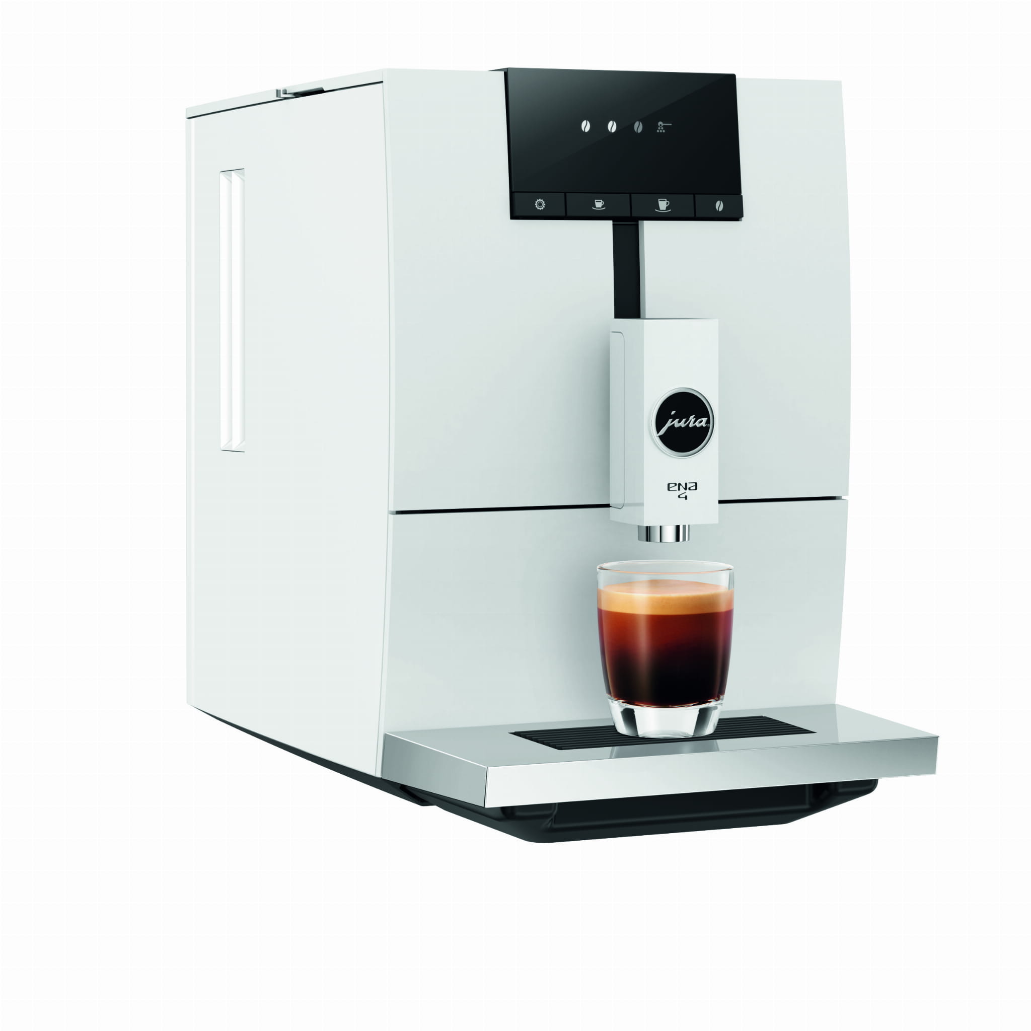 Naciśnij przycisk i rozkoszuj się smakiem – w ten prosty sposób obsługa ENA 4 sprowadza się do minimum. Można dokonać wstępnego ustawienia trzech stopni aromatu kawy, jak również wybrać kawę mieloną. Zgodnie z mottem firmy JURA «świeżo mielona, nie z kapsułki» młynek AromaG3 zapewnia wyjątkowo szybkie mielenie ze szczególną dbałością o aromat.