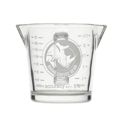 Rhino Coffee Gear przedstawia funkcjonalny i trwały kieliszek z podwójną wylewką i wygodnym uchwytem. Pojemność miarki 70ml jest idealna do podwójnego espresso.